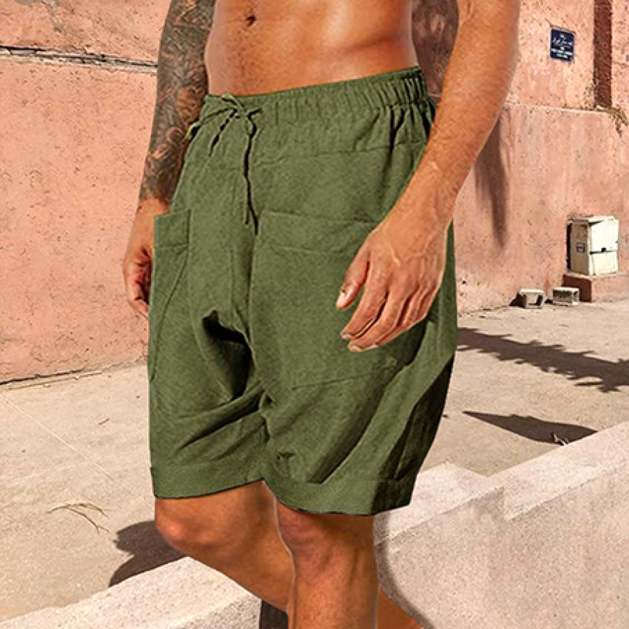 shorts,men's boho linen drawstring loose with pockets casual shorts
