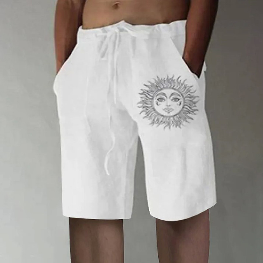 Men's Casual Printed Cotton And Linen Shorts