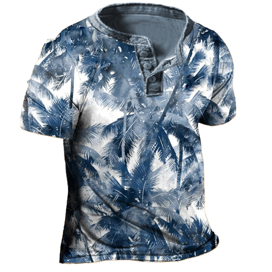 Men's Coconut Tree Henley Short Sleeve T-Shirt