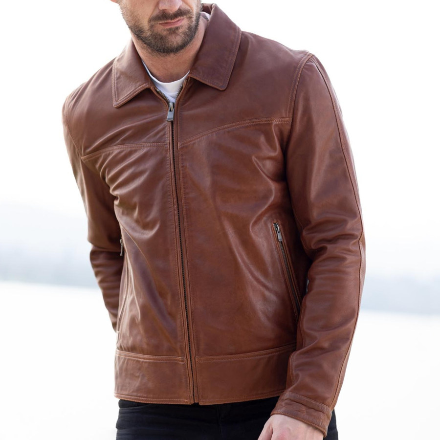 jackets&coats,men's collared leather jacket