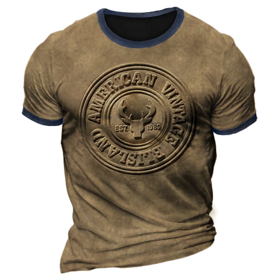 t-shirts,men's color block 3d emboss logo print crew t-shirt