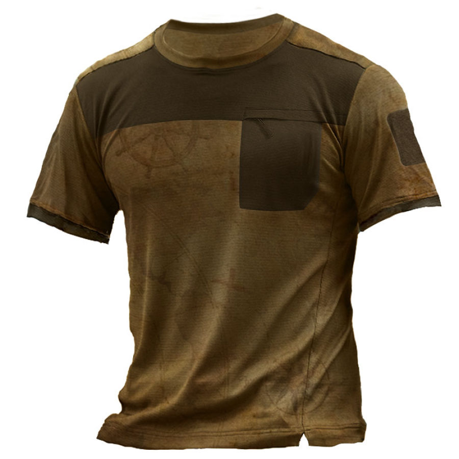 Men's Contrast Panel Nautical Map Graphic Print T-Shirt
