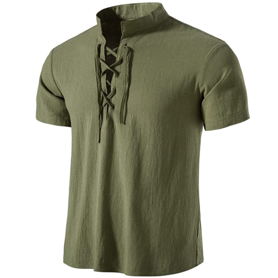 Men's Cotton Traditional Retro Style Lace Up Short Sleeve Shirts