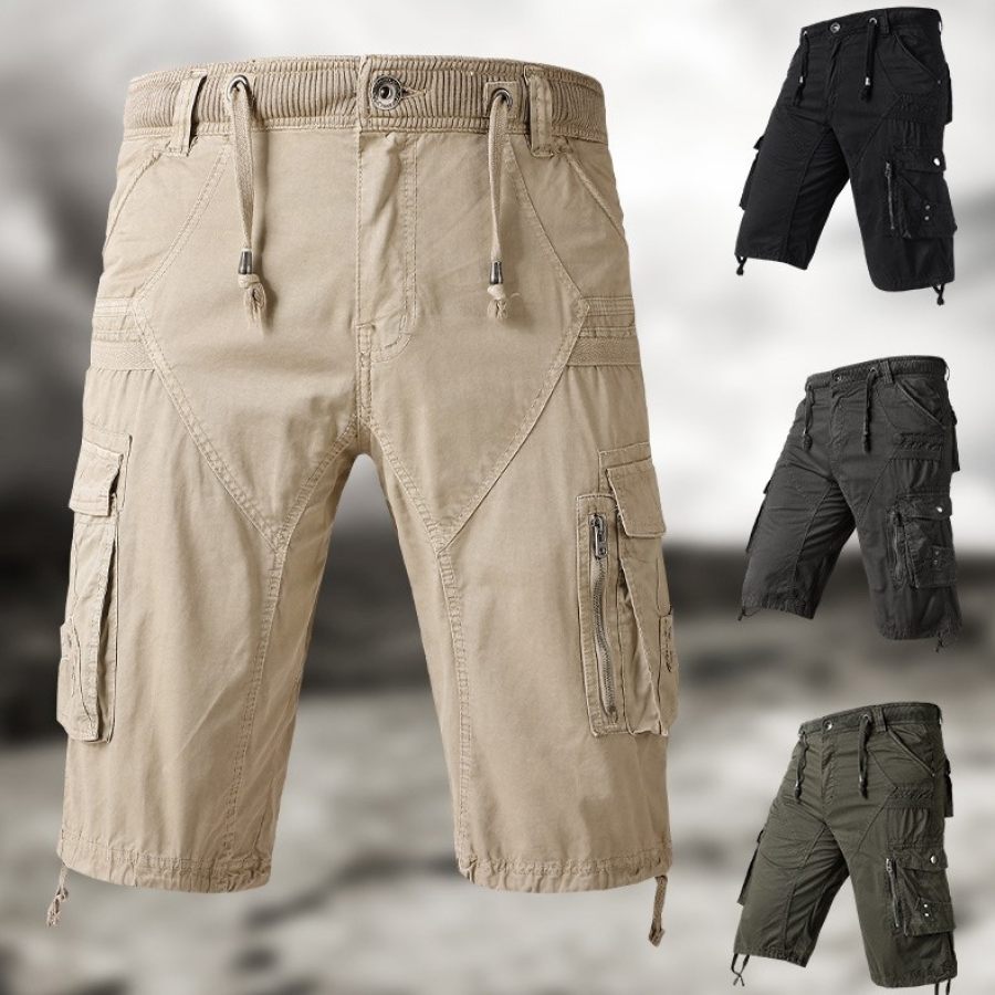 tactical shorts,men's drawstring elastic waist zip multi pocket cotton cargo shorts