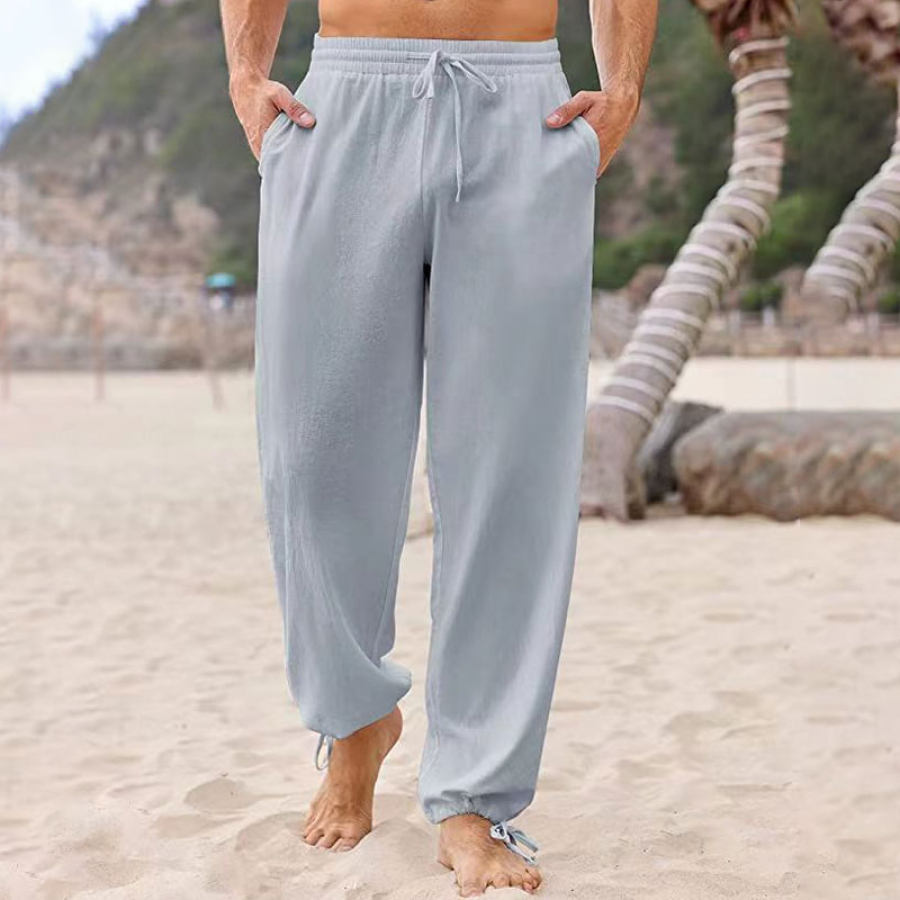 Men's Drawstring Loose Cotton Stretch Tapered Beach Pants