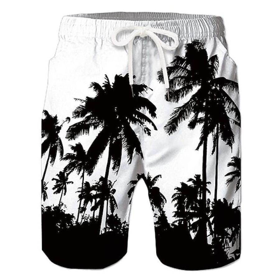 shorts,men's drawstring shorts coconut tree hawaiian beach summer daily bottoms white