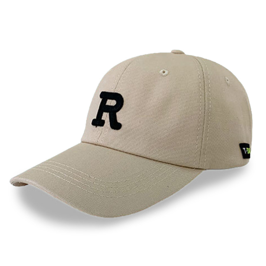 Men's Embroidered R Washed Baseball Cap Casual Peaked Cap
