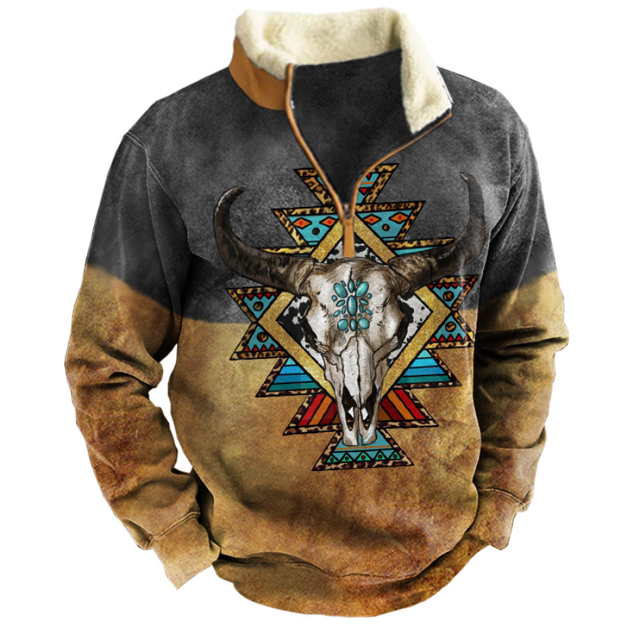 Men's Ethnic Cowboy Pattern Stitching Tooling Tactical Sweatshirt