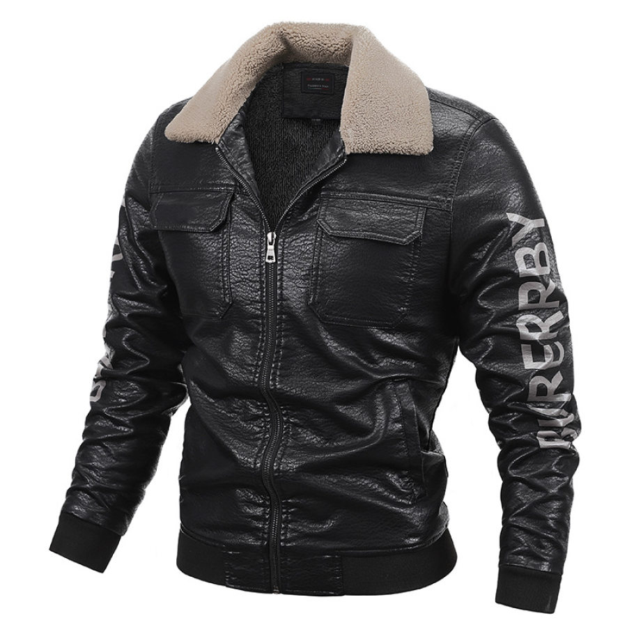 Men's Fleece Warm Leather Jacket