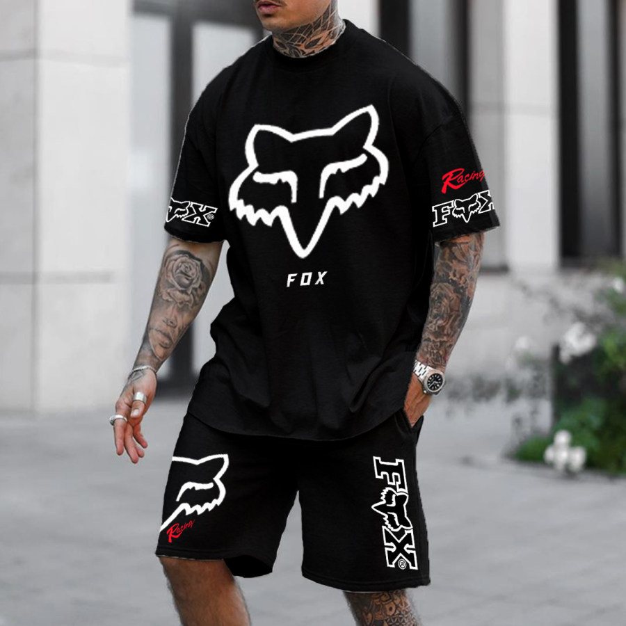 Men's Four Motorcycle Racing Printed Casual Shorts Suit