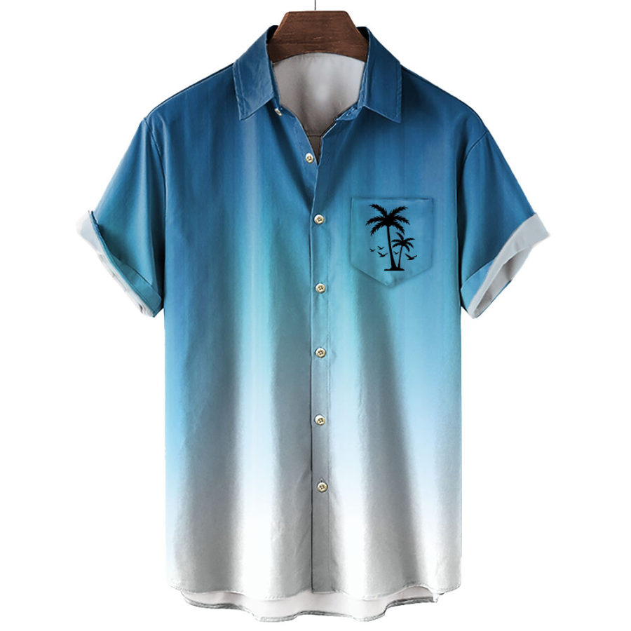 Men's Gradient Coconut Tree Hawaiian Print Shirt