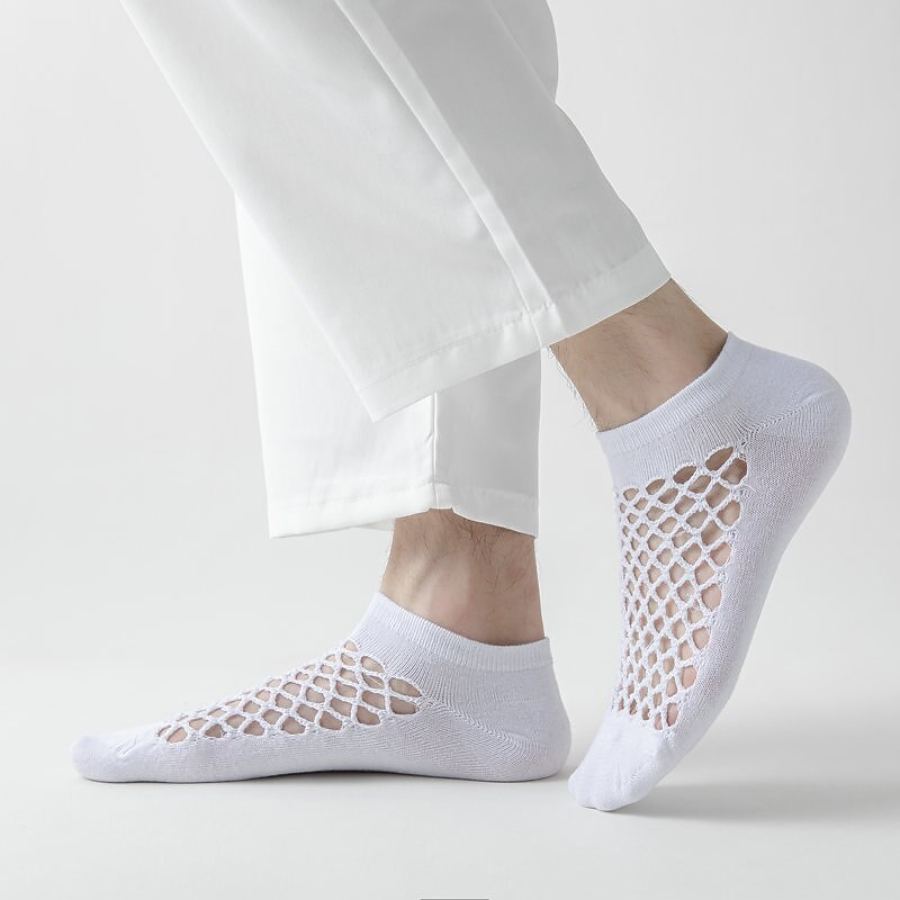 Men's Hollow Mesh Shallow Crew Socks Thin Invisible Non-slip Socks