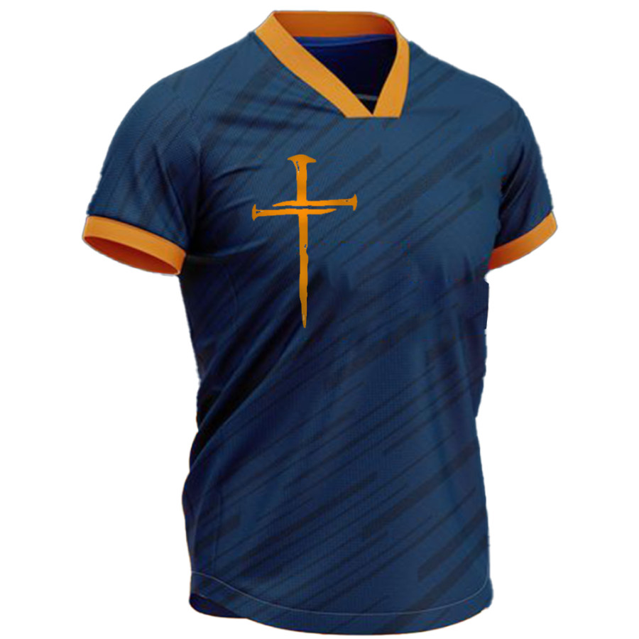 Men's Jesus Cross Print Colorblock V-Neck T-Shirt