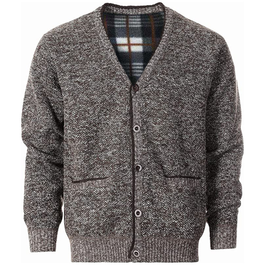 cardigan,men's knitted v-neck button down cardigan sweater with flannel lining and pockets
