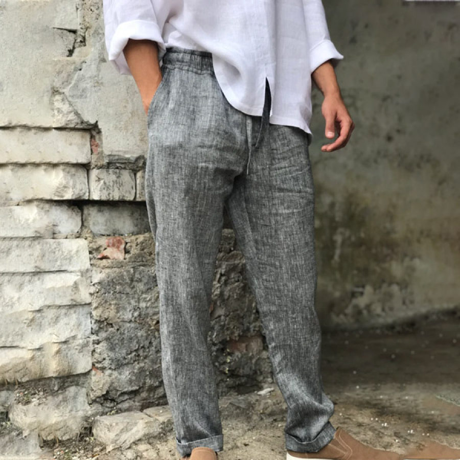Men's Linen Pants Trousers Summer Pants Beach Pants Casual Pocket Elastic Drawstring Pants