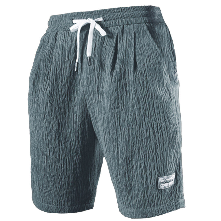shorts,men's linen pleated drawstring casual beach shorts
