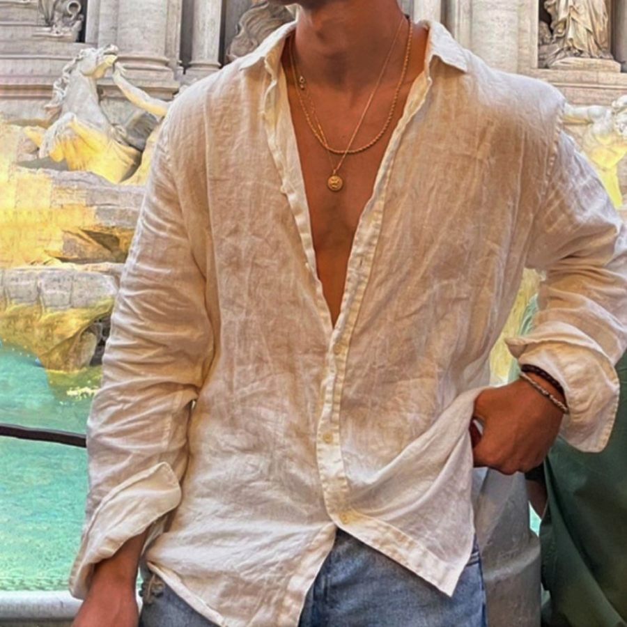 Men's Loose Long Sleeve Open Breathable Linen Shirt