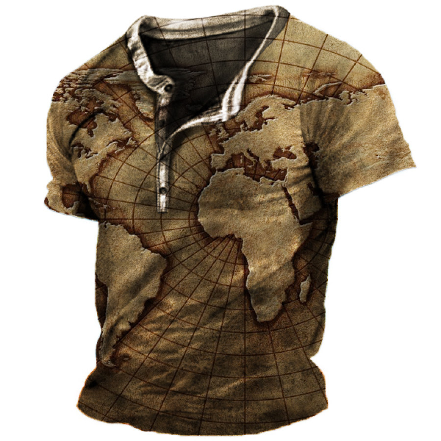 Men's Map Henley Short Sleeve T-Shirt
