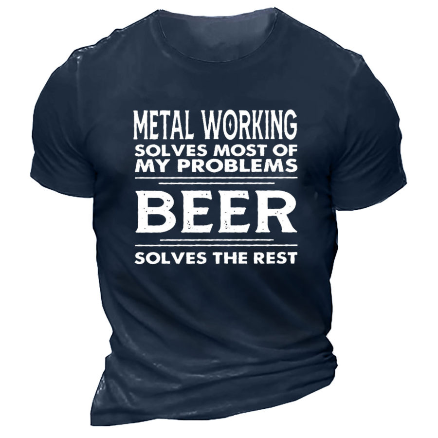 Men's Metal Working Solves Most Of My Problems Beer Solves The Rest Cotton T-Shirt