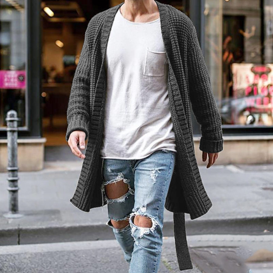cardigan,men's mid length lace-up sweater cardigan jacket