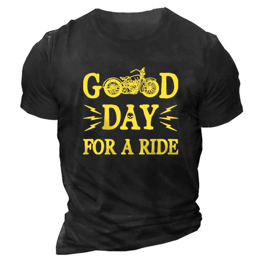 Men's Motorcycle Good Day For A Ride Print Cotton T-Shirt