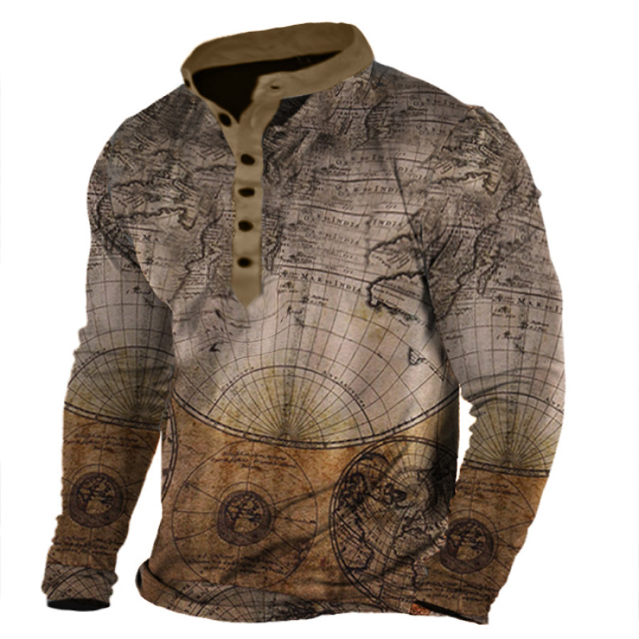 Men's Nautical Map Print Henley Collar T-Shirt