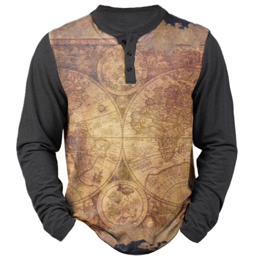 Men's Nautical Map Print Henley Collar T-Shirt