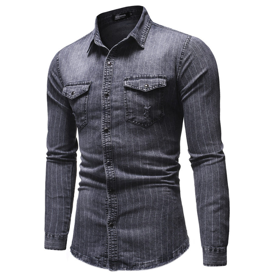 button-downs,men's new striped denim shirt