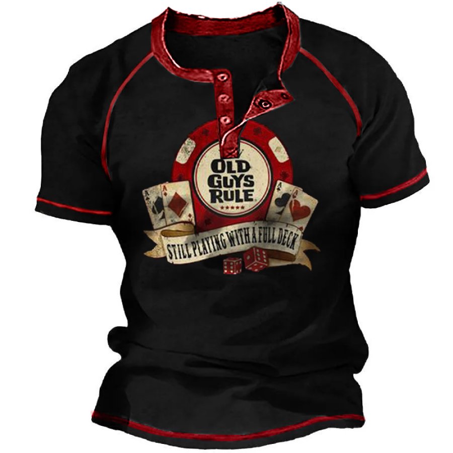 Men's Old Guys Rules Henley Graphic T-Shirt