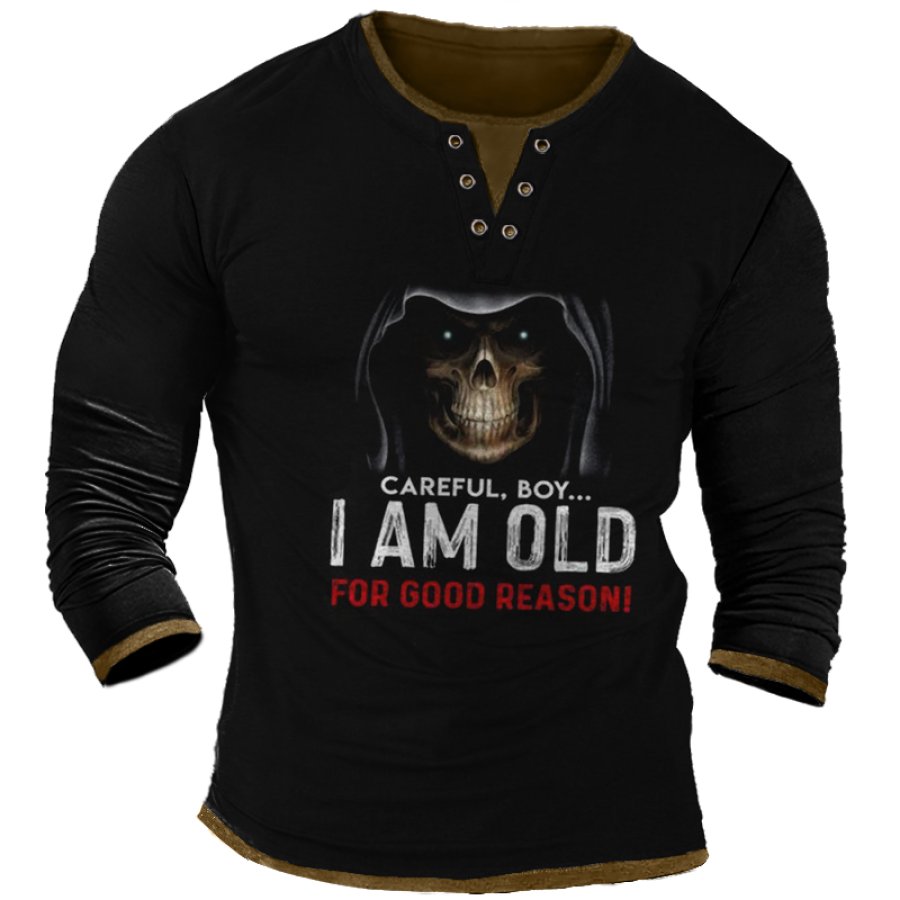 Men's Old Man Color Block Print Long Sleeve T-Shirt