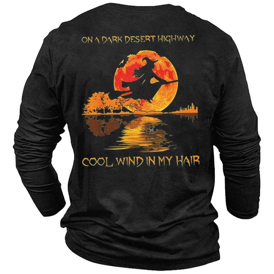 Men's On A Dark Desert Highway Cool Wind In My Hair Halloween Text Letters Tops