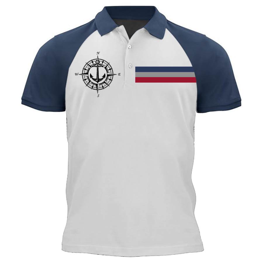 Men's Outdoor Anchor Stripe Raglan Print Polo T-Shirt