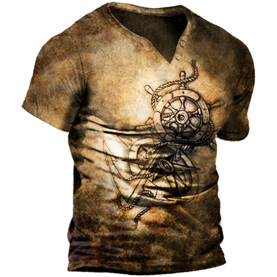 Men's Outdoor Compass Anchor Print V-Neck T-Shirt