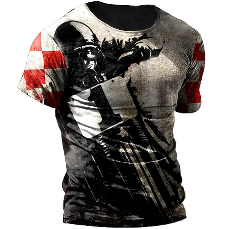 Men's Outdoor Motorcycle Patchwork Checkerboard Print T-Shirt