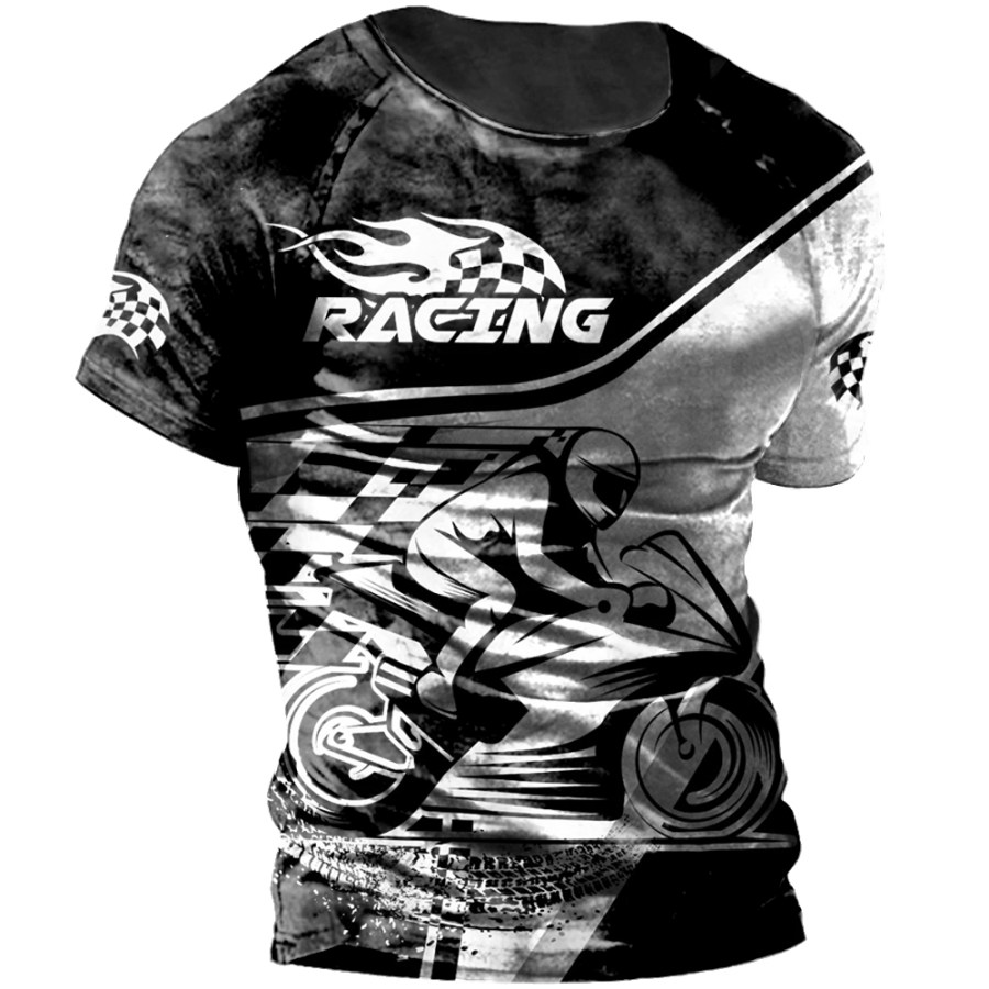 Men's Outdoor Motorcycle Racing Print Crew Neck T-Shirt
