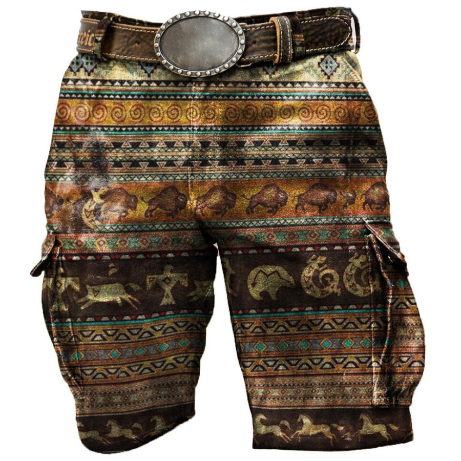 shorts,men's outdoor multi pocket distressed aztec print tactical shorts
