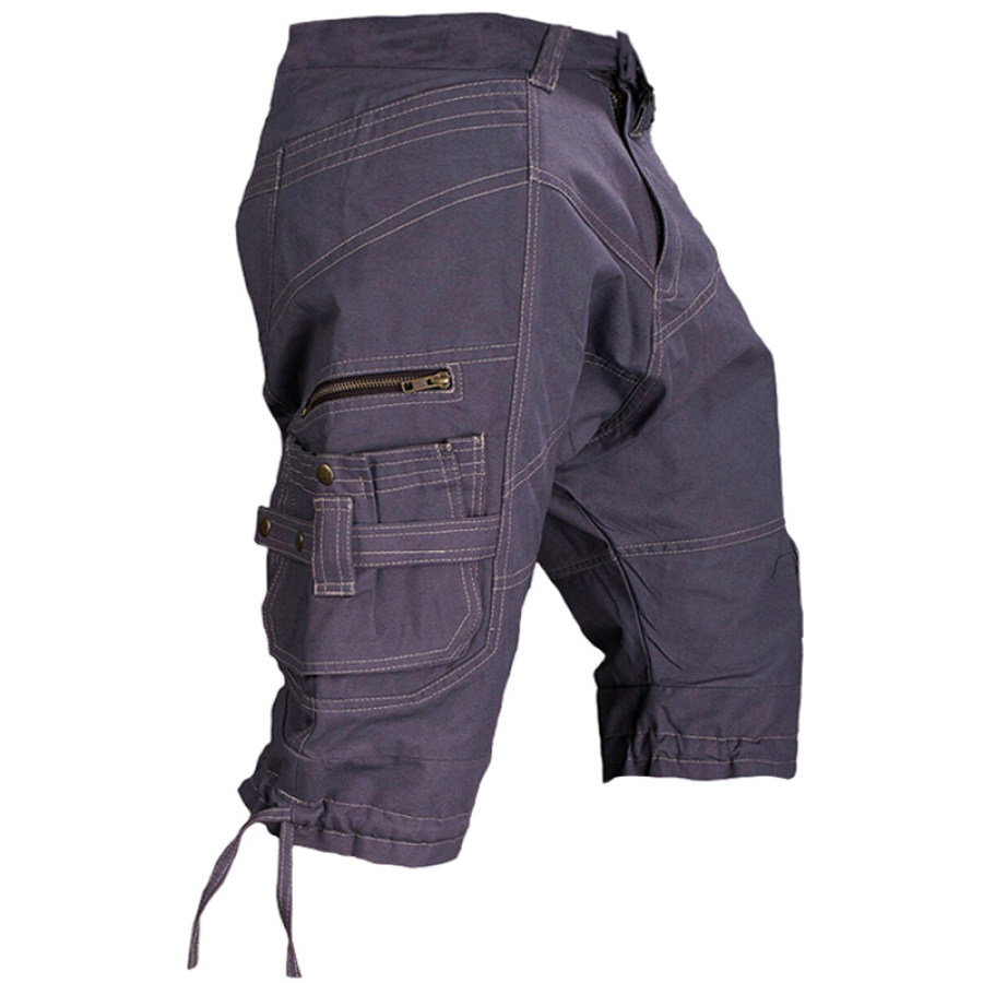 tactical shorts,men's outdoor multi-pocket design zip tactical denim shorts