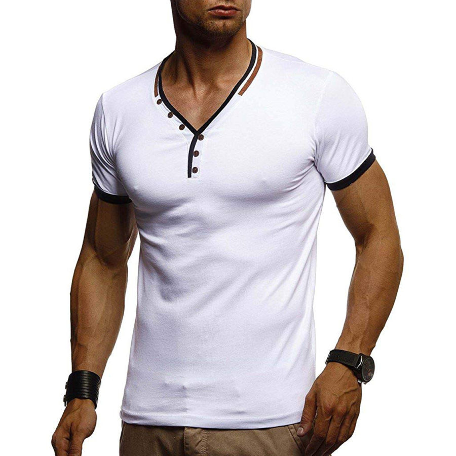 Men's Outdoor Neck Button Panel Henley T-Shirt