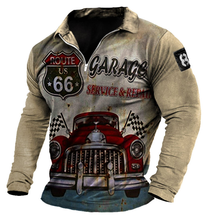 Men's Outdoor Racing Route 66 Graphic Print Half Open Neck T-Shirt