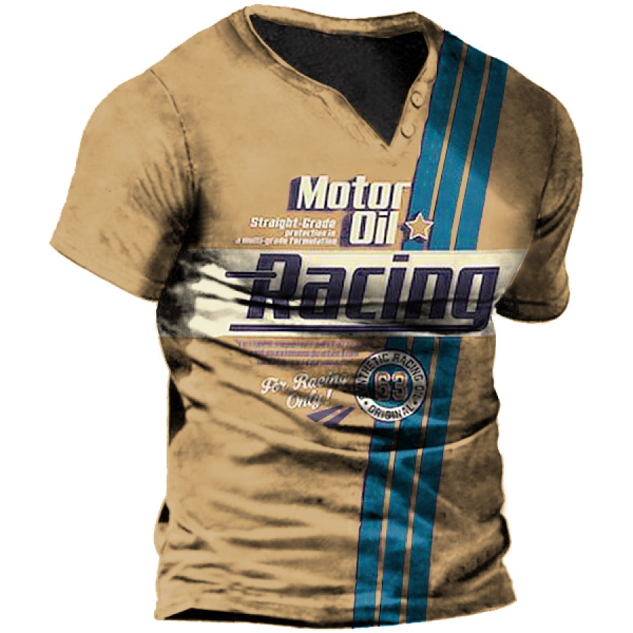 Men's Outdoor Racing Stripe Print V-Neck T-Shirt