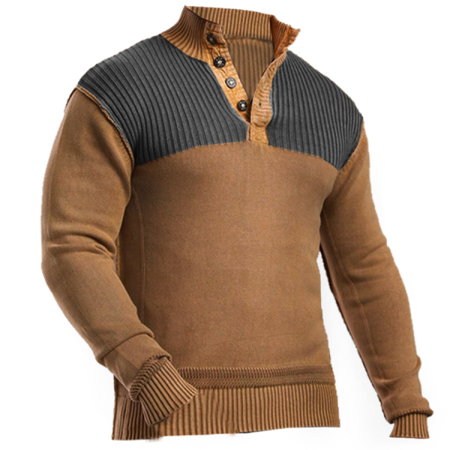 sweaters & cardigans,men's outdoor retro contrast warm tactical henley sweater pullover