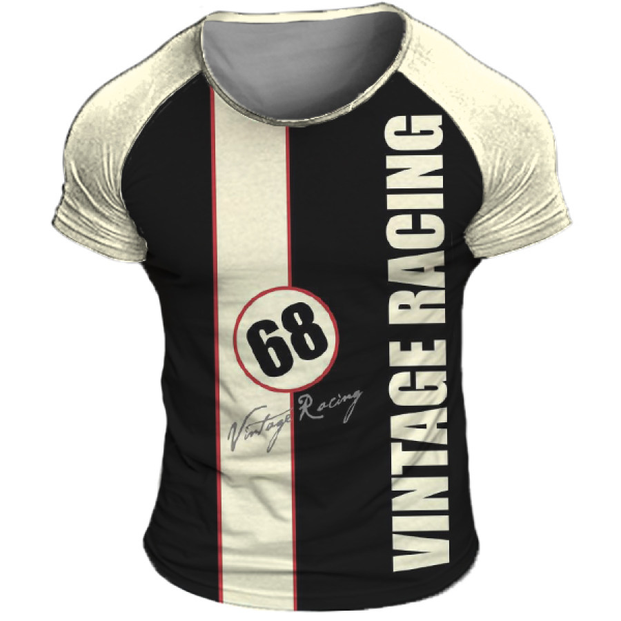 Men's Outdoor Retro Racing Striped Short Sleeve T-Shirt