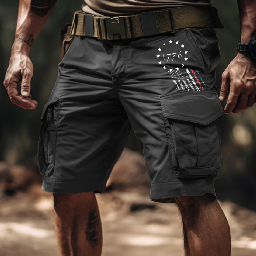 Men's Outdoor Retro Tactical Training Utility Overalls American Flag 1776 Pattern Printed Shorts