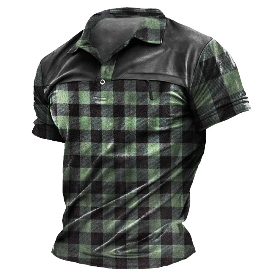 Men's Outdoor Tactical Check Panel Print Henley Shirt