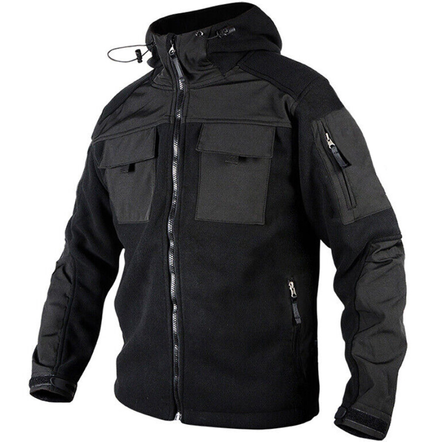 Men's Outdoor Tactical Fleece Multi Pockets Hood Warm Softshell Jacket
