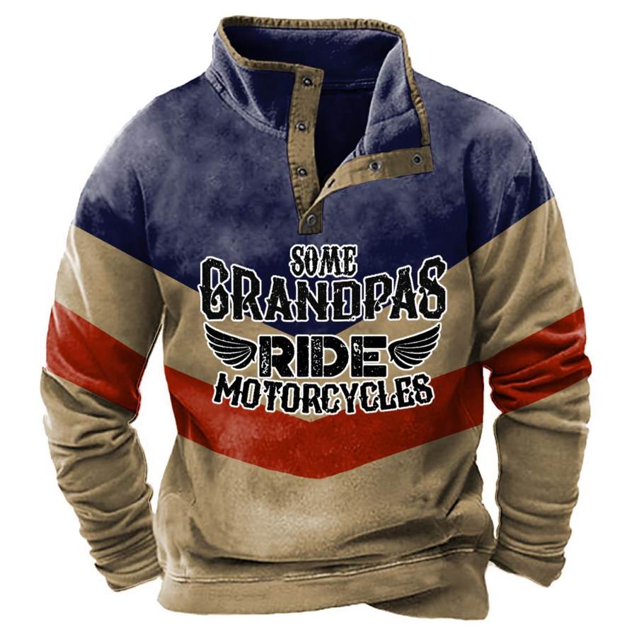 hoodies&sweatshirts,men's outdoors grandpas ride motorcycles snap sweatshirt