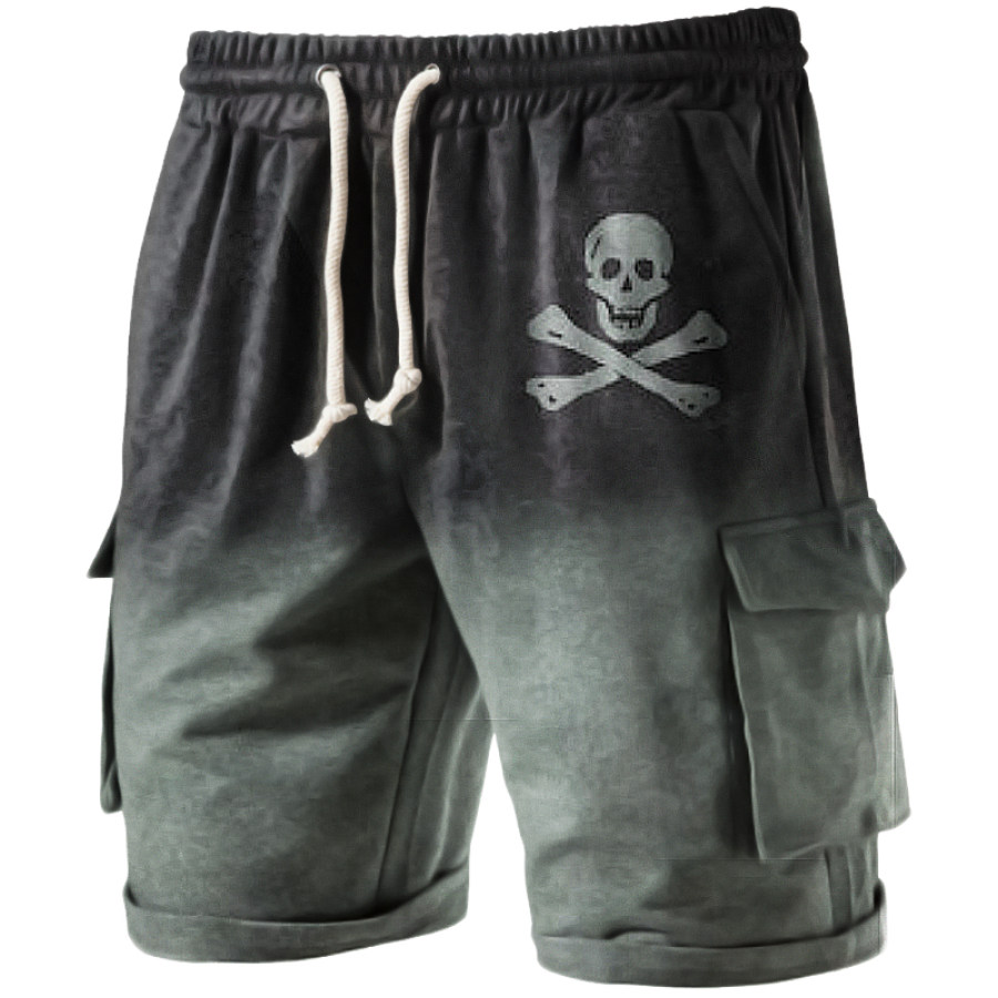 Men's Pirate Skull Print Sports Pocket Drawstring Shorts