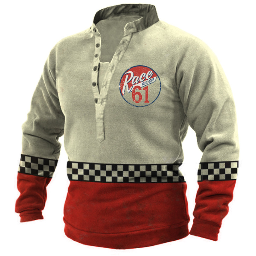 Men's Race 61 Racing Car Checkerboard Henley Button Sweatshirt