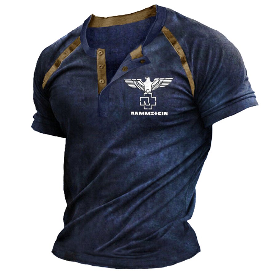 t-shirts,men's rammstein printed henry short sleeve t-shirt