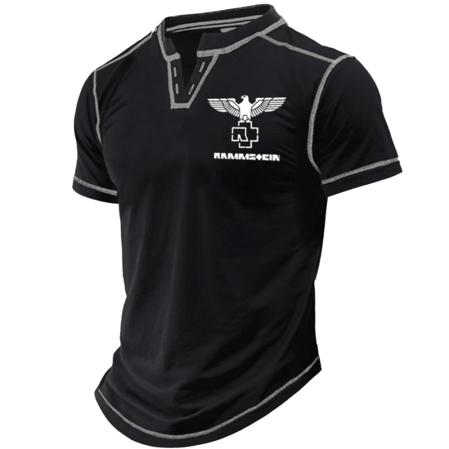 t-shirts,men's rammstein printed henry short sleeve t-shirt